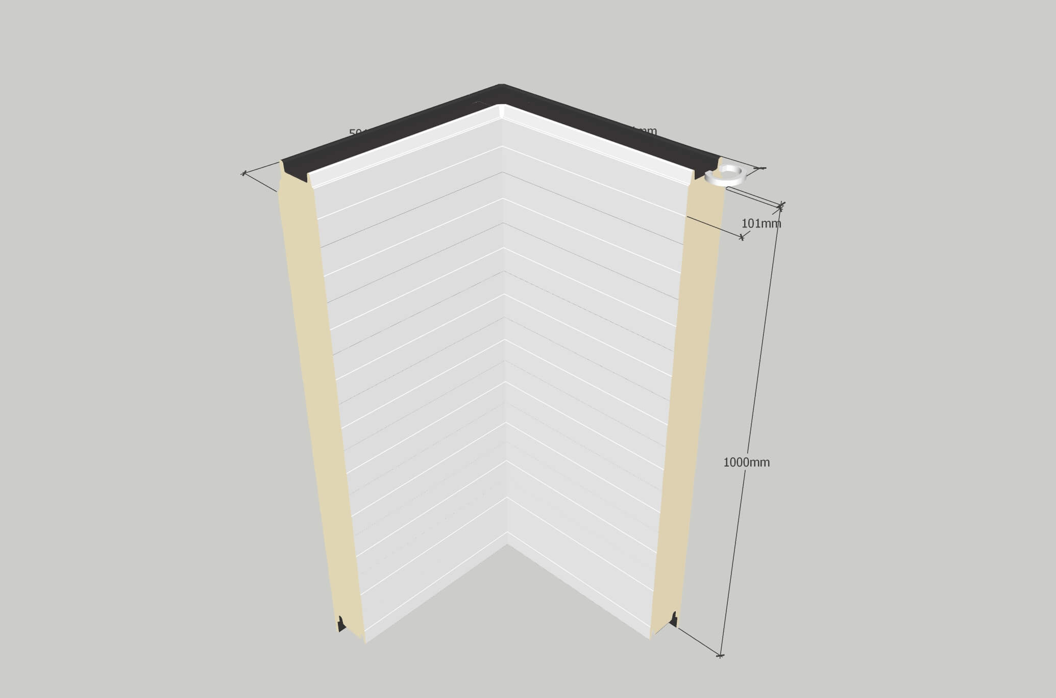 Hörnsandwichelement med dold skarv (PIR) – vägg, horisontell