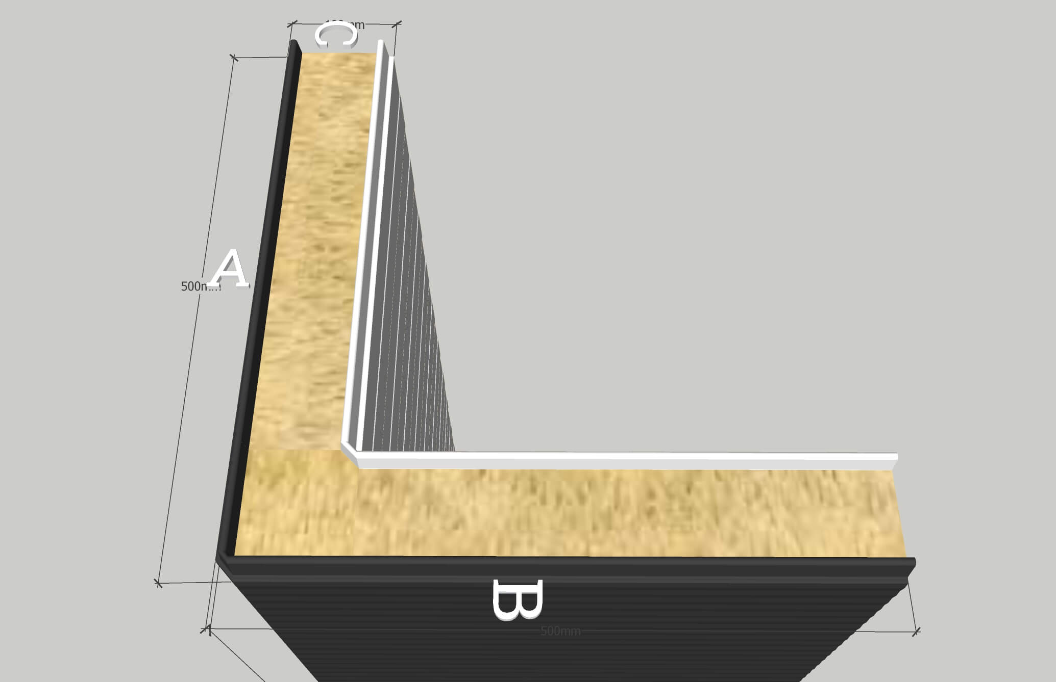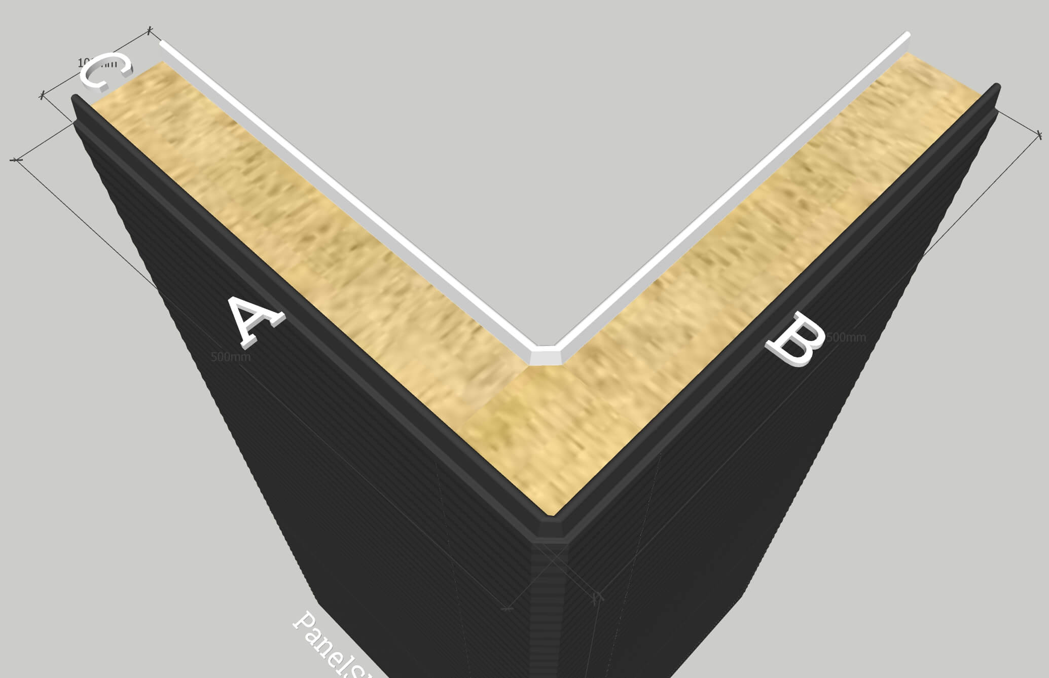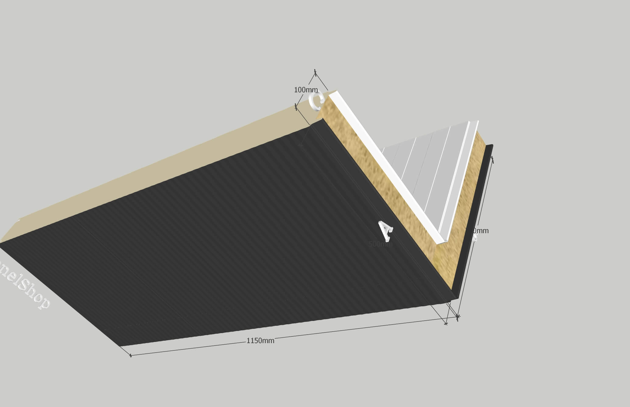 Leveranstid – upp till 5 veckor, beställningar tillsammans med klassiska paneler över 250 m². Längderna (A, B) måste specificeras. Transport ingår inte i panelernas pris.