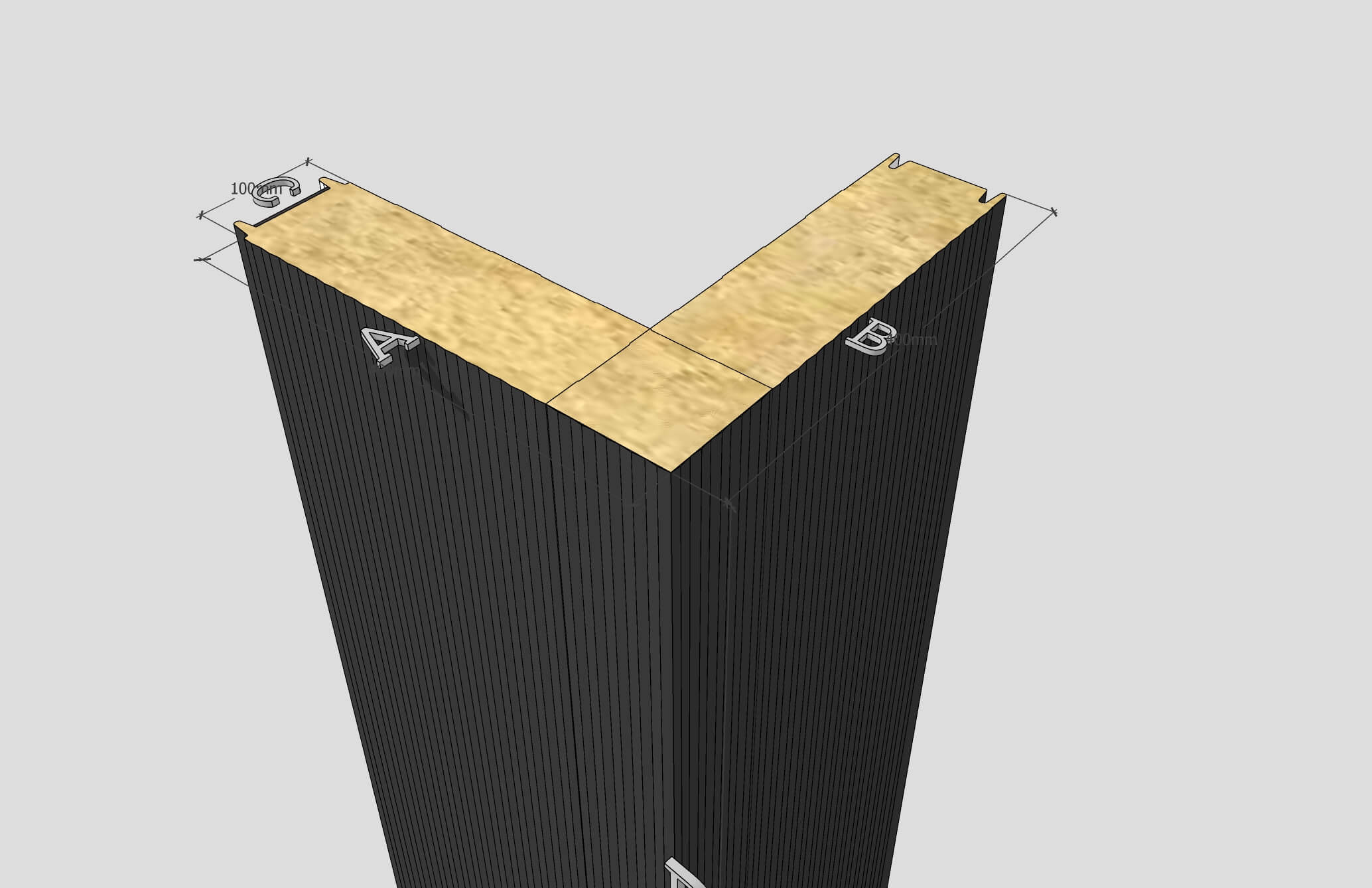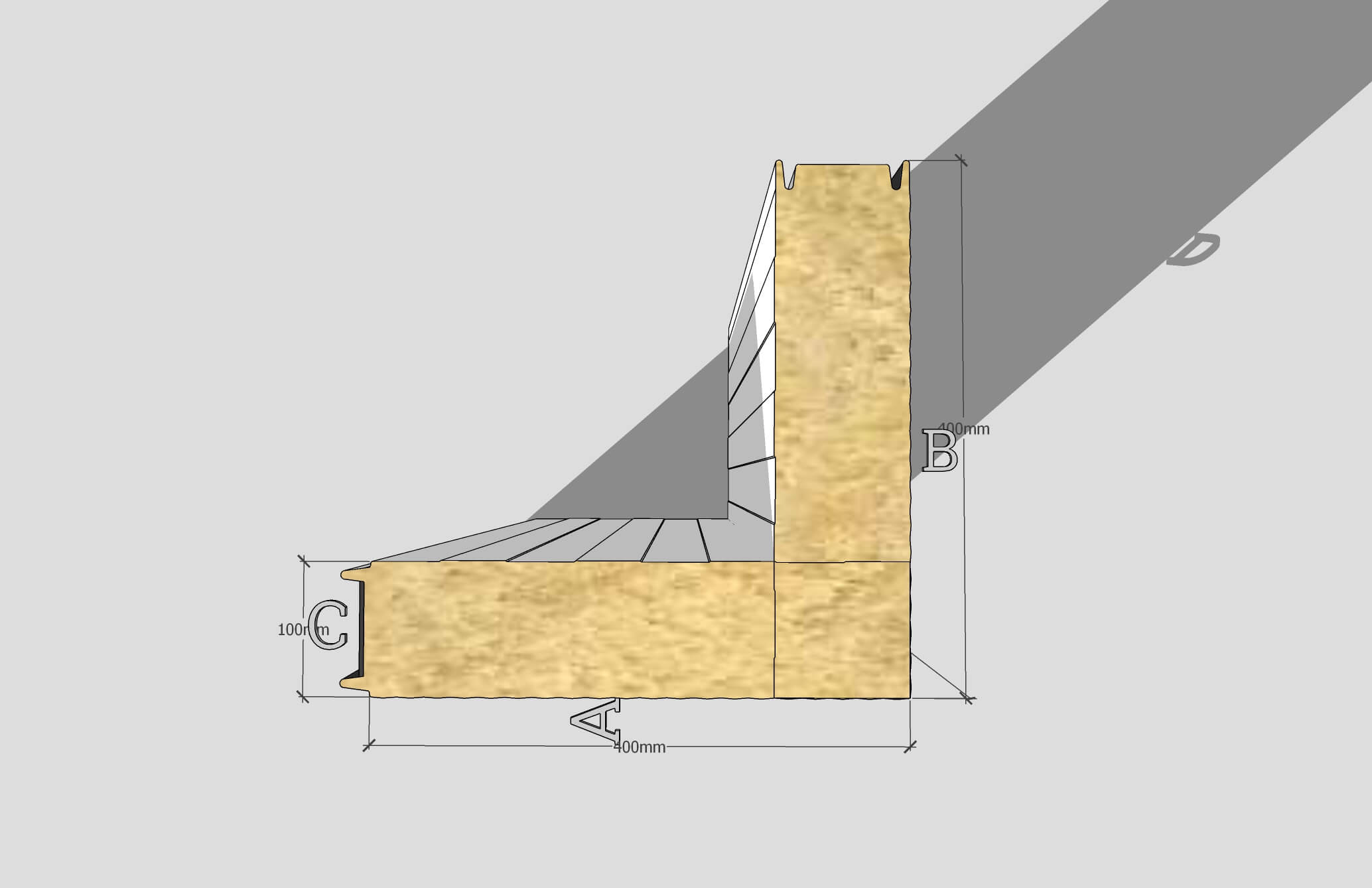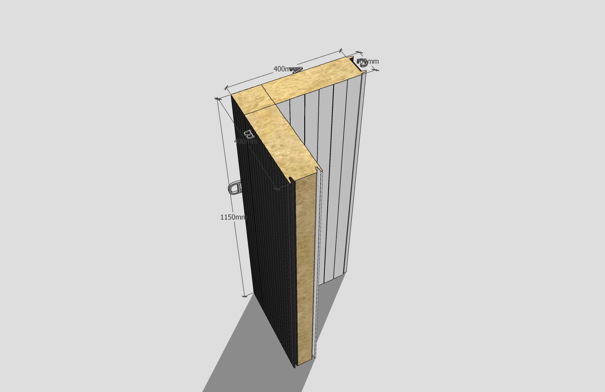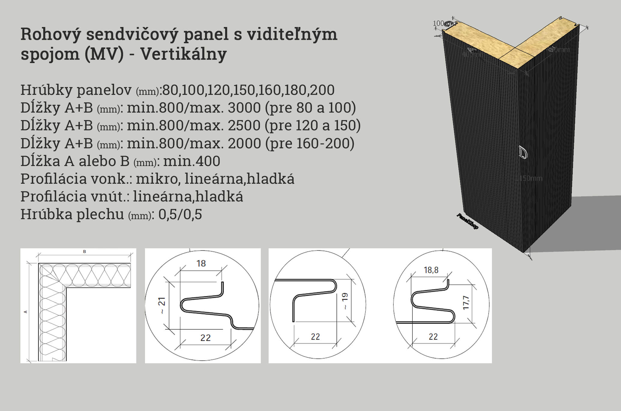 Hörnsandwichpanel med synlig skarv (MV) – vertikal