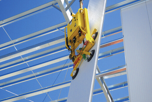 8. Panelerna kan flyttas antingen med hjälp av en vakuumlyft (rekommenderas), med hjälp av en mekanisk gripanordning (lyftklämmor) och kran, men även manuellt med hjälp av spännband.