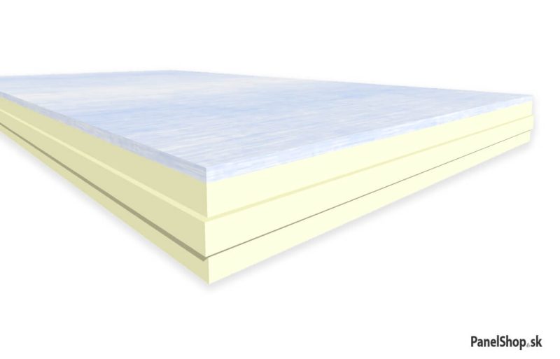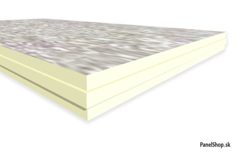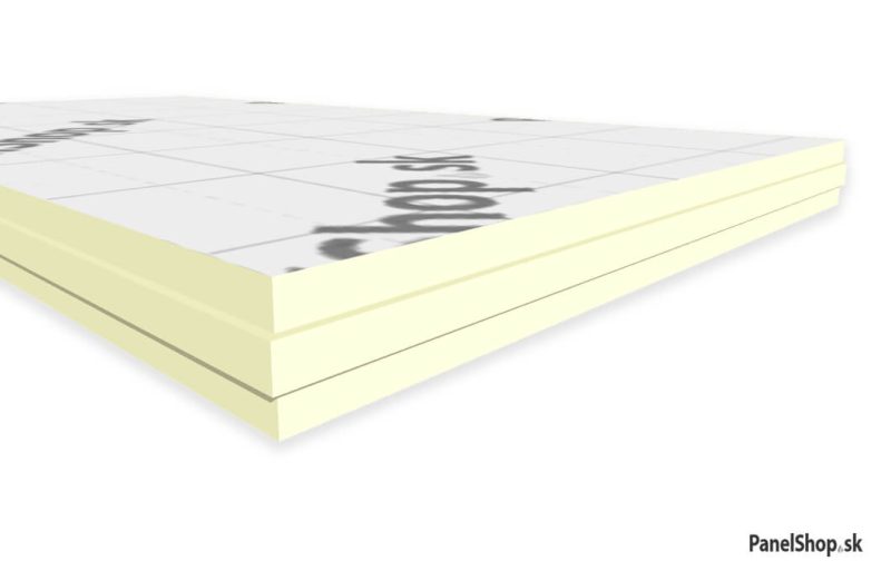 PIR panel s obojstranným obkladom z kraftového papiera (kartón). Jadro panelu je z tvrdenej PIR polyizokyanurátovej peny.