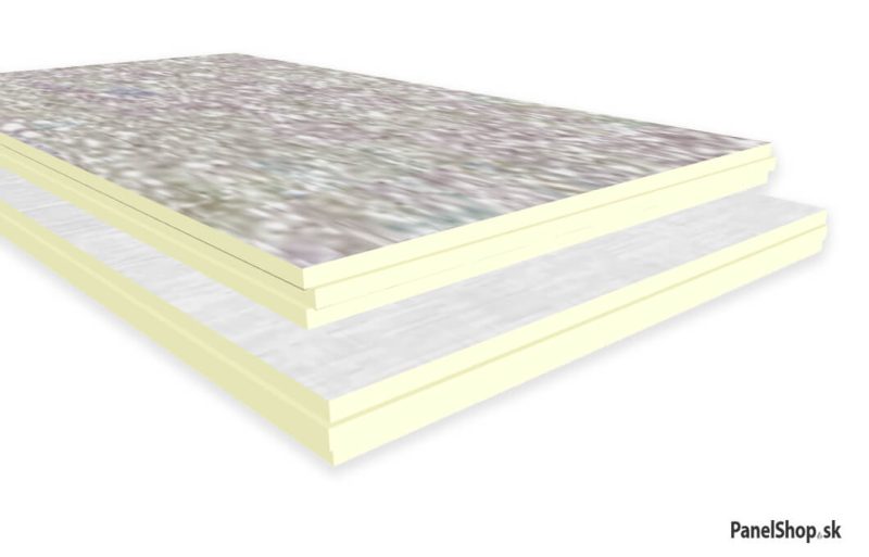PIR panel s obojstranným obkladom z bitumenovej tkaniny (sklená tkanina nasiaknutá asfaltom). Jadro panelu je z tvrdenej PIR polyizokyanurátovej peny.