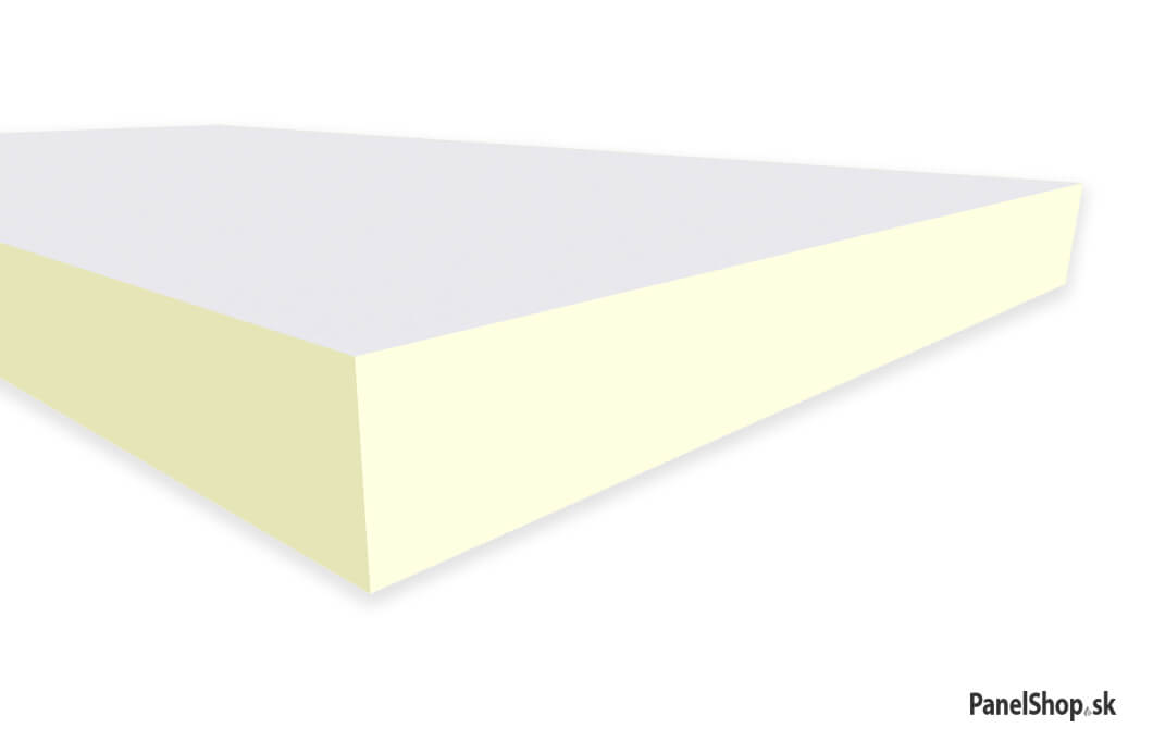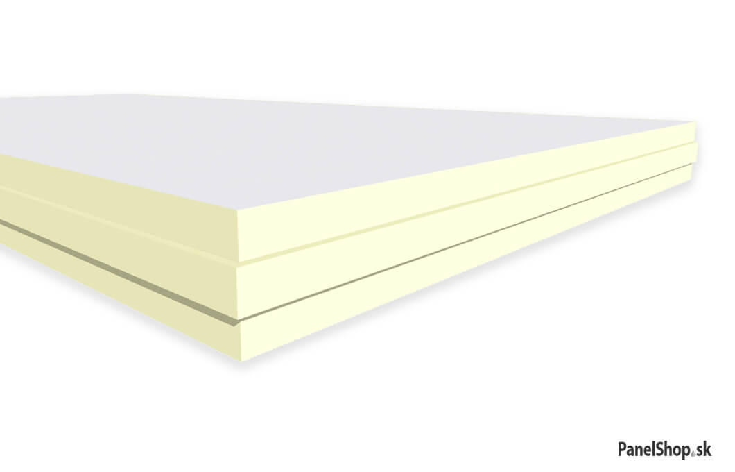 PIR panel s obojstranným obkladom z kraftového papiera (kartón). Jadro panelu je z tvrdenej PIR polyizokyanurátovej peny.