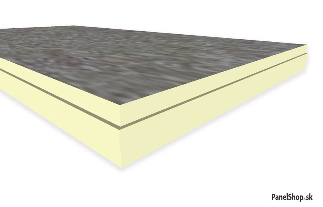 PIR panel s obojstranným obkladom z bitumenovej tkaniny (sklená tkanina nasiaknutá asfaltom). Jadro panelu je z tvrdenej PIR polyizokyanurátovej peny.