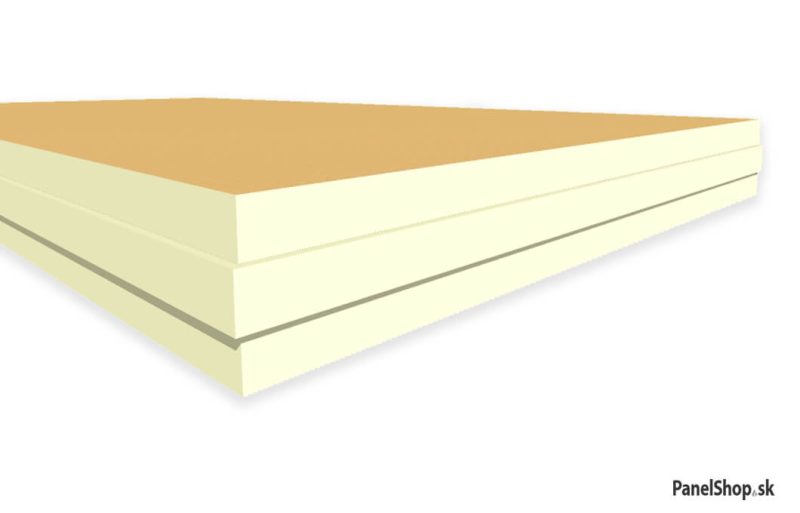 PIR panel s obojstranným obkladom z kraftového papiera (kartón). Jadro panelu je z tvrdenej PIR polyizokyanurátovej peny.