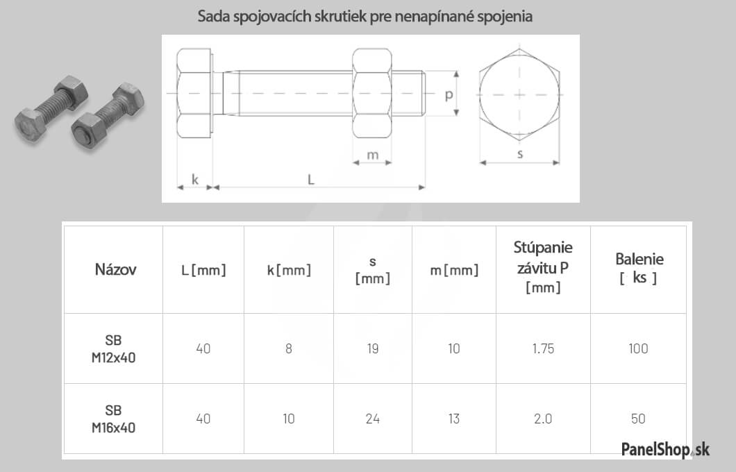 Satser med förbindningsskruvar med muttrar för ospända förband, används som klassiska skruvar för fastsättning av profiler till konstruktionsprofiler. PKP04.1_001
