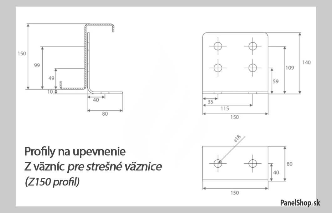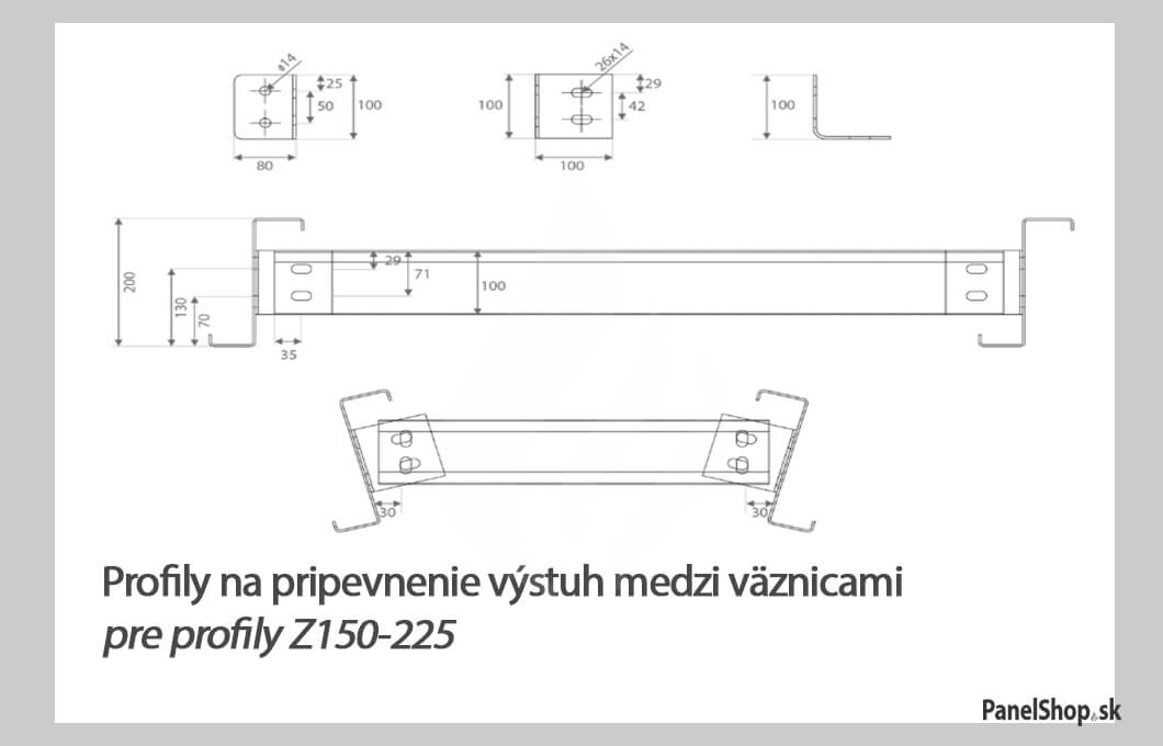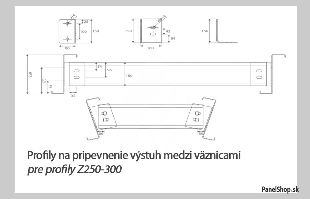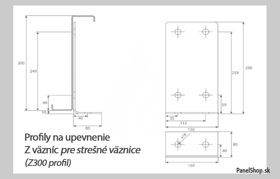 Profil för infästning av Z-åsar är ett element som används för korrekt fastsättning av profilen till konstruktionen. Infästningen av profilen utförs så att den nedre flänsen på Z-profilen inte är understödd på balkarna. Erbjuder profiler för infästning av Z-åsar på tak för höjder 150–300 mm. Profilen har en tjocklek på 4 mm.