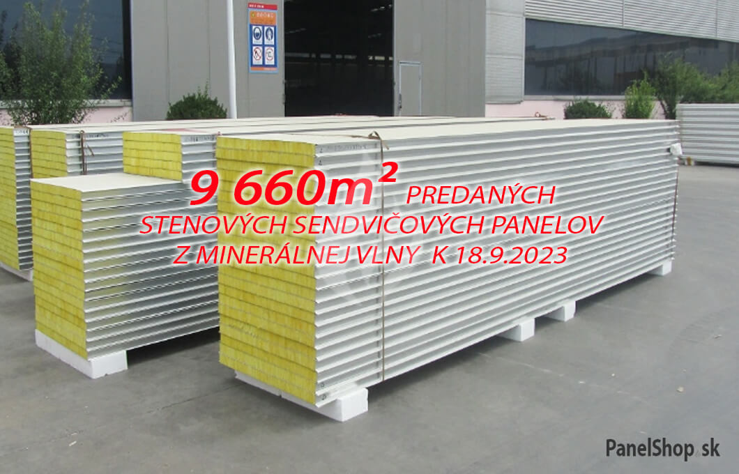 napr.: Sendvičový panel, stenový, 100mm, 300m2. Sendvičový panel, strešný, 120mm, 42ks (8,2m dlhých), 420m2. Príslušenstvo, 100ks, 150mm skrutky do oceľovej konštrukcie.