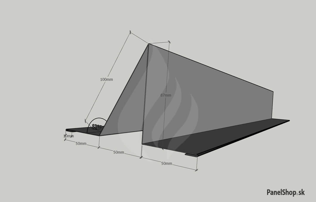 Oplechovanie – (10.2) Protisnehová zábrana – Plech_14 pre sendvičové montované stavby. Maximálna dĺžka je 6m. Hrúbka plechu je štandardne 0,5-0,7mm. Možnosť zadania vlastných parametrov.