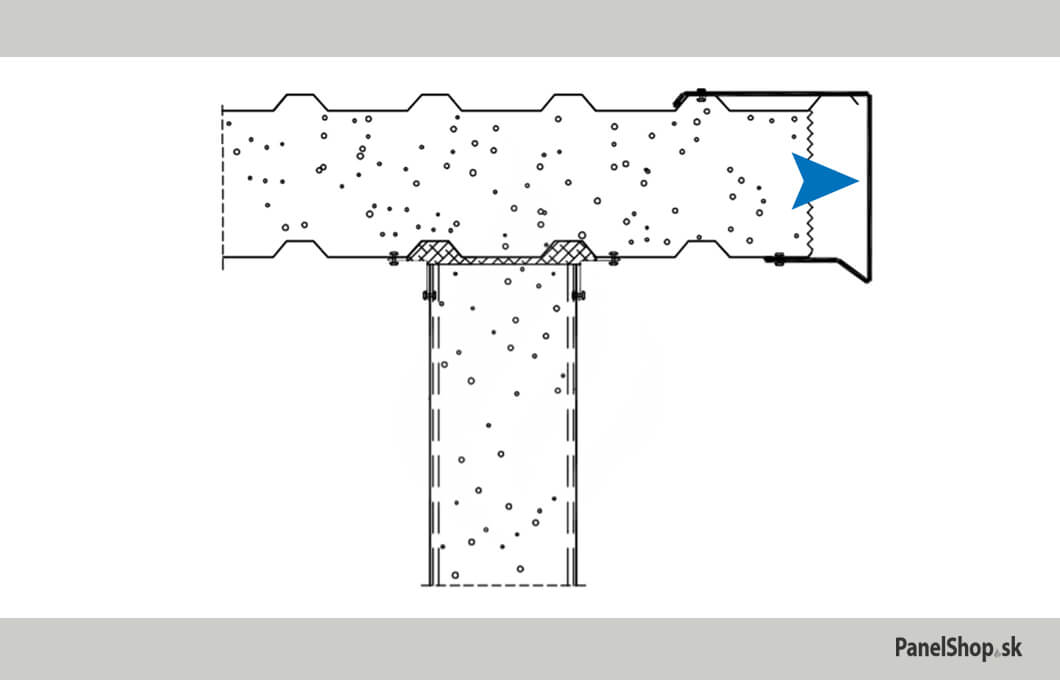 Oplechovanie – (23.1) Veterná čepeľ – Plech_60 pre sendvičové montované stavby. Maximálna dĺžka je 6m. Hrúbka plechu je štandardne 0,5-0,7mm. Možnosť zadania vlastných parametrov.