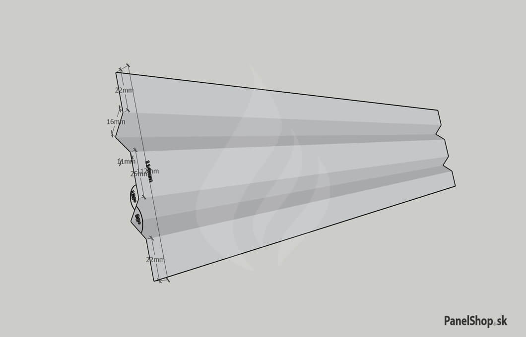 Oplechovanie – (27.1) Kontaktná plocha zakrývajúca zemnú časť – Plech_110 pre sendvičové montované stavby. Maximálna dĺžka je 6m. Hrúbka plechu je štandardne 0,5-0,7mm. Možnosť zadania vlastných parametrov.