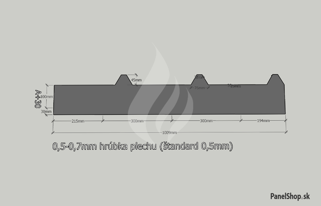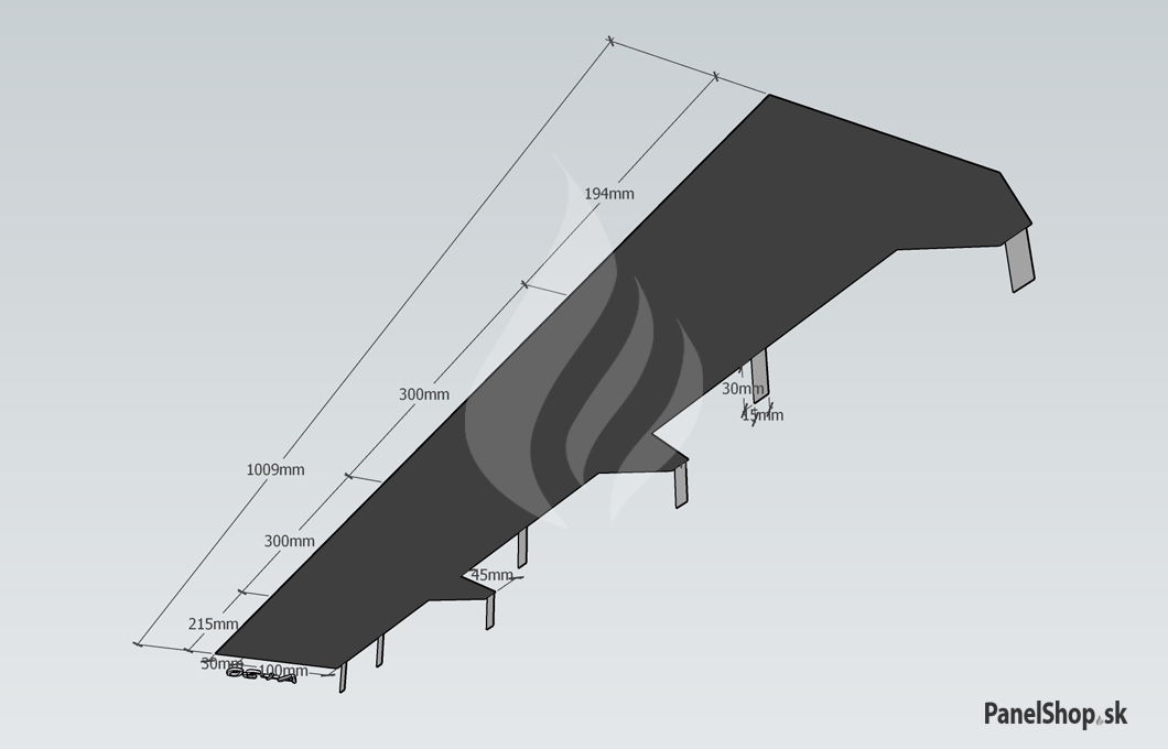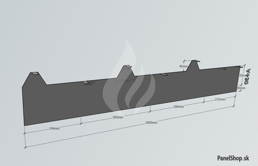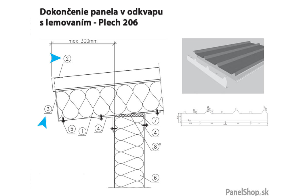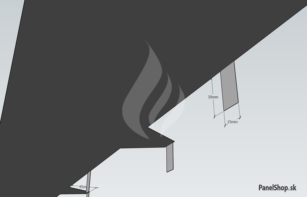 Oplechovanie – (39.1) Dokončenie panela v odkvape s lemovaním – Plech_206. Maximálna dĺžka je 1009mm. Hrúbka plechu je štandardne 0,5-0,7mm. Možnosť zadania vlastných parametrov.