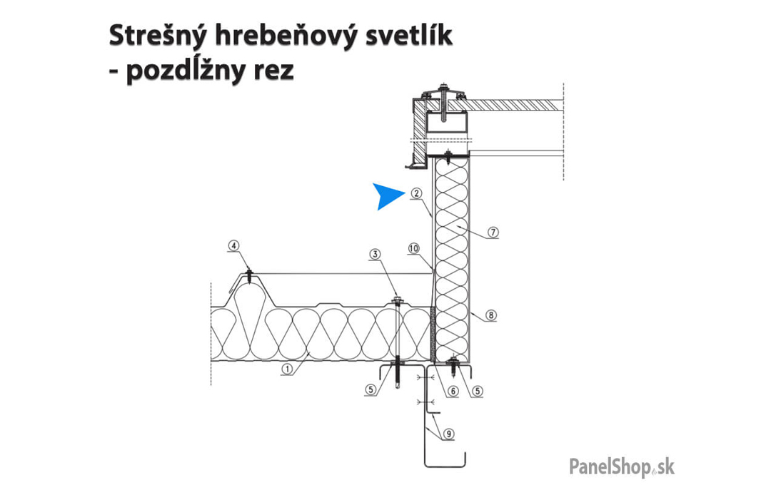Oplechovanie – (41.1) Strešný hrebeňový svetlík – Plech_77 pre sendvičové montované stavby. Maximálna dĺžka je 6m. Hrúbka plechu je štandardne 0,5-0,7mm. Možnosť zadania vlastných parametrov.