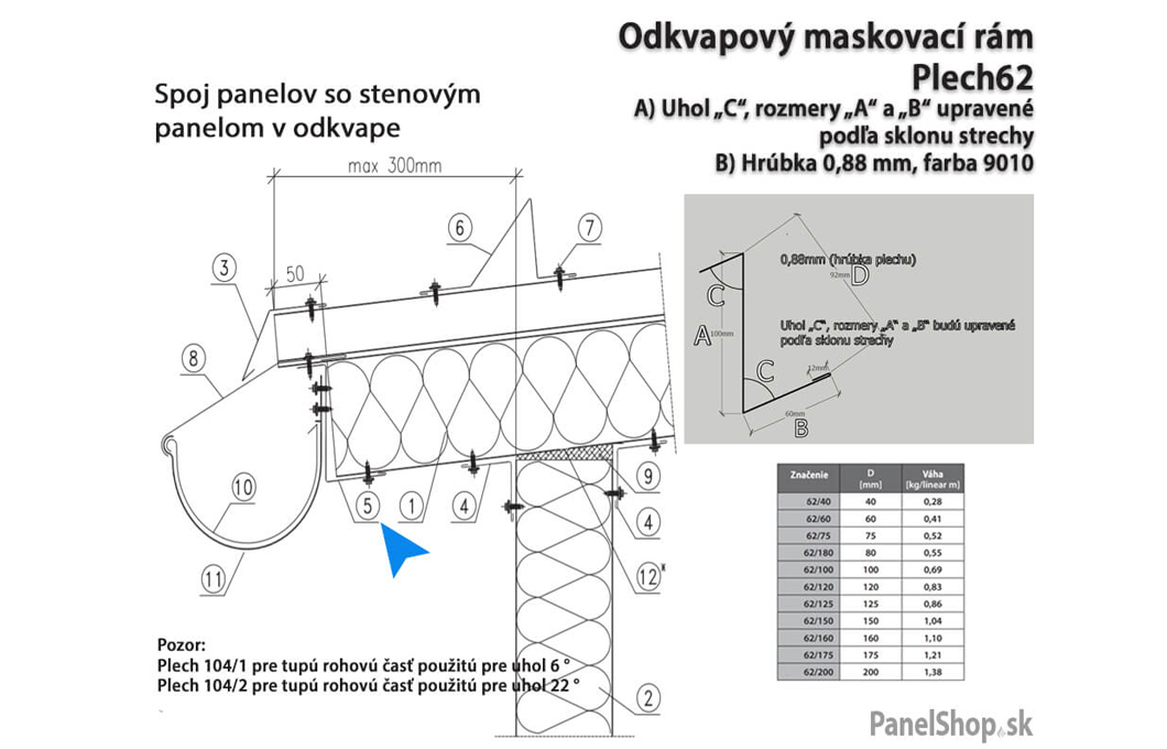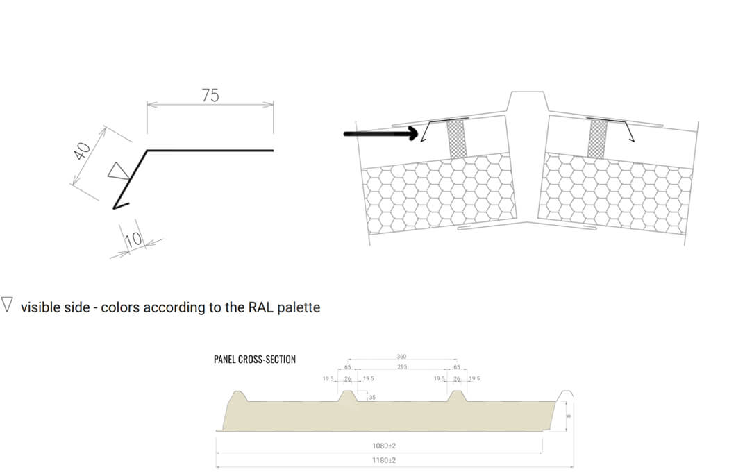 Standardlängden på plåten är 2 m. Färgerna finns tillgängliga i RAL-nyanser, samma som för sandwichpaneler. Möjlighet att ange egna parametrar. Vi har förberett visualiseringar av plåtdetaljerna samt exempel på placering.