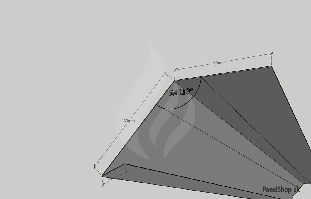 Plåtbeslag – (14.2) Rännbeslag – Plåt_19 för sandwichmonterade byggnader. Standardlängden är 2 m. Maximal längd är 6 m. Plåttjockleken är som standard 0,5–0,7 mm. Möjlighet att ange egna parametrar.