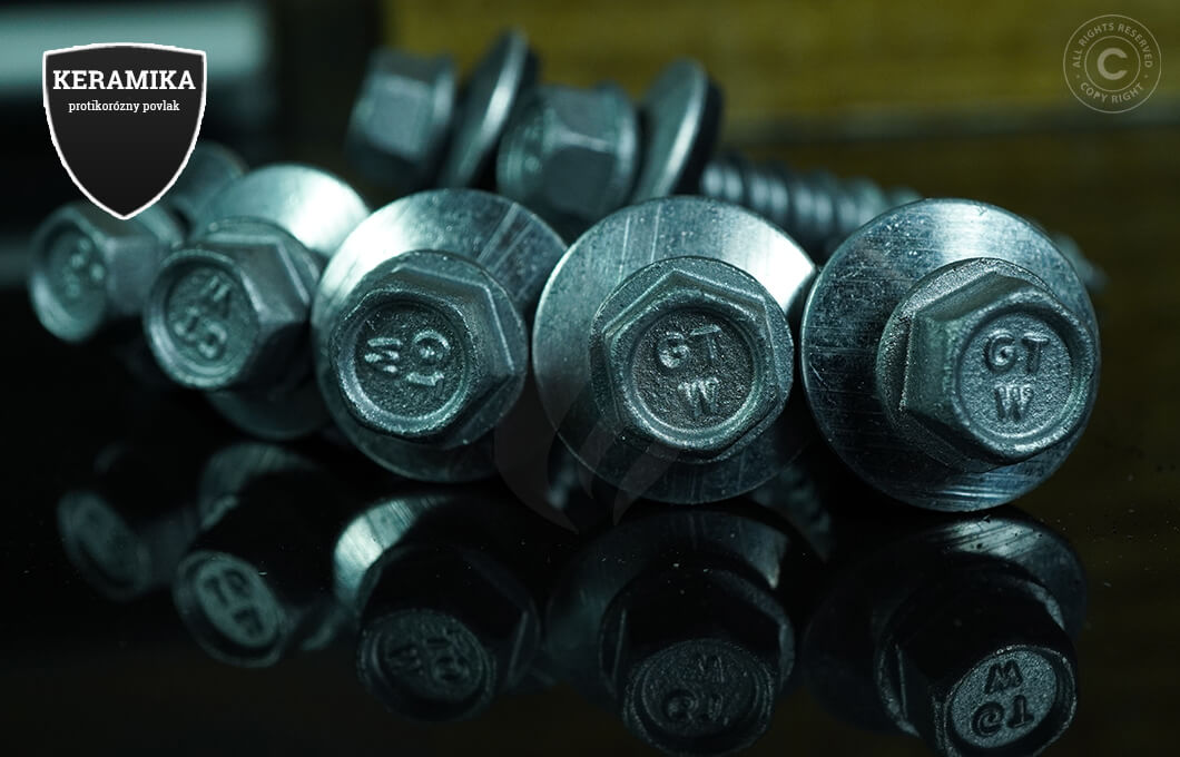 TEX samorezné skrutky sú vyrobené z pozinkovanej úšlachtilej ocele a špeciálnej protikoróznej keramickej úprave. Šesť-hraná 8mm závitová hlava (10,5mm priemer celá hlavička). EPDM podložka je pozinkovaná navulkanizovaná v rozmeroch 16mm (štandard).