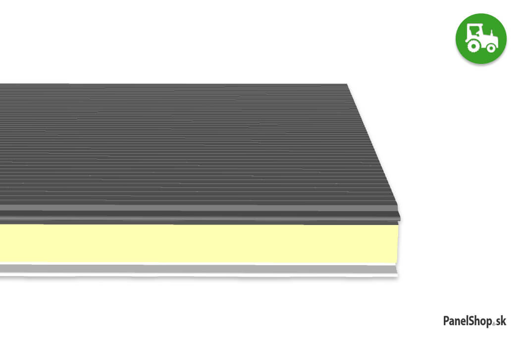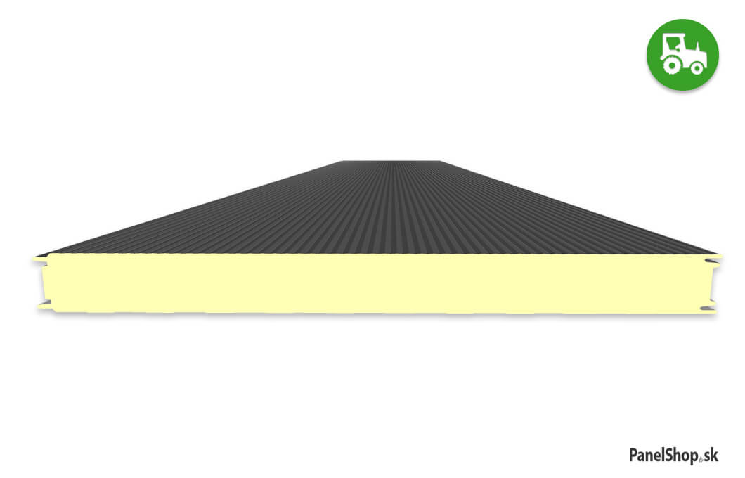 Sandwichpanelen består av två färgade, galvaniserade, profilerade stålplåtar och en polyisocyanurat (PIR) kärna. Plåtarnas tjocklek kan vara från 0,5 mm till 0,7 mm. Standardtjockleken på plåtarna är 0,5/0,4 mm. Användning av en högkvalitativ “lantbruksbeläggning” (35 µm) som ytbehandling. Vi erbjuder även andra typer av ytbehandlingar med mikrontjocklekar från 25 µm, 35 µm, 50 µm, 55 µm upp till 120 µm. Dessa behandlingar är lämpliga för olika korrosionskategorier och miljöer i klasserna C1 till C5.