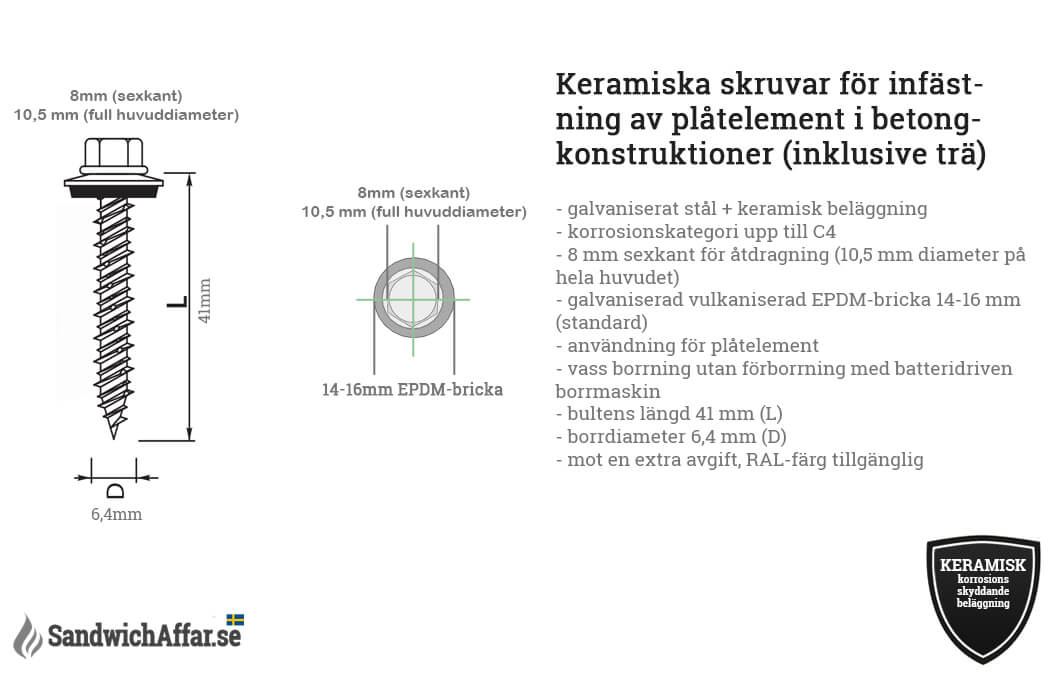 Keramiska skruvar för infästning av plåtelement i betongkonstruktioner