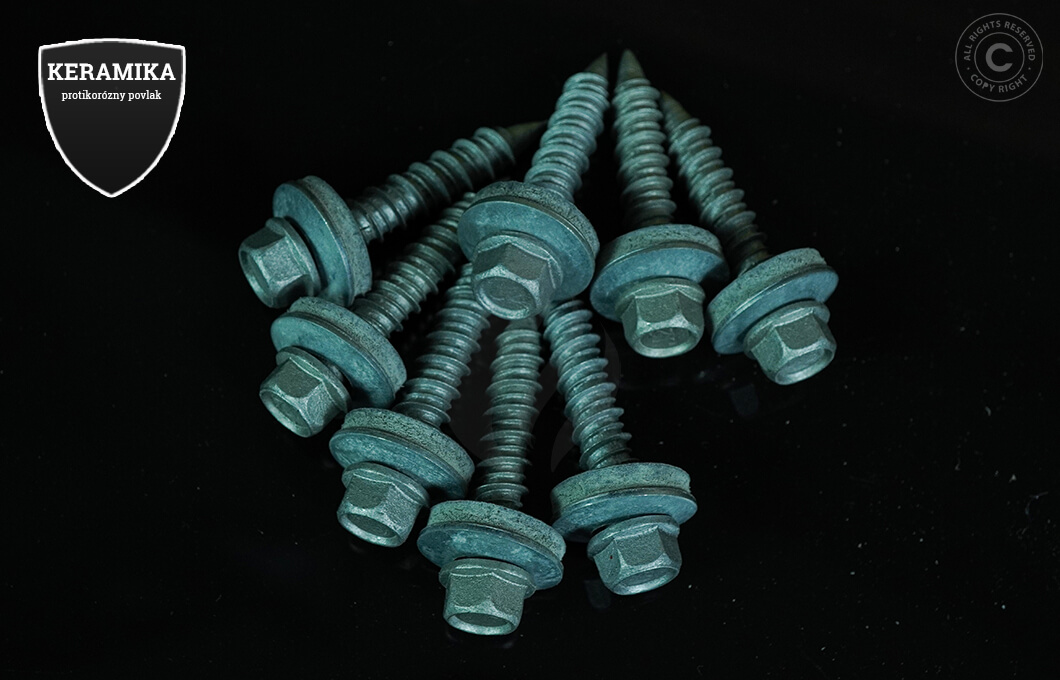 TEX självgängande skruvar är tillverkade av galvaniserat rostfritt stål och en speciell korrosionsskyddande keramisk behandling. Sexkantigt 8 mm gängat huvud (10,5 mm diameter på hela huvudet). EPDM-bricka är galvaniserad och vulkaniserad i dimensionerna 14 mm (standard). Korrosionskategori upp till C4