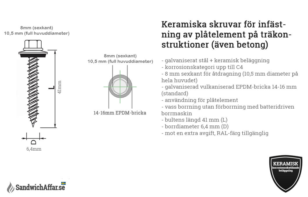Keramiska skruvar för infästning av plåtelement på träkonstruktioner