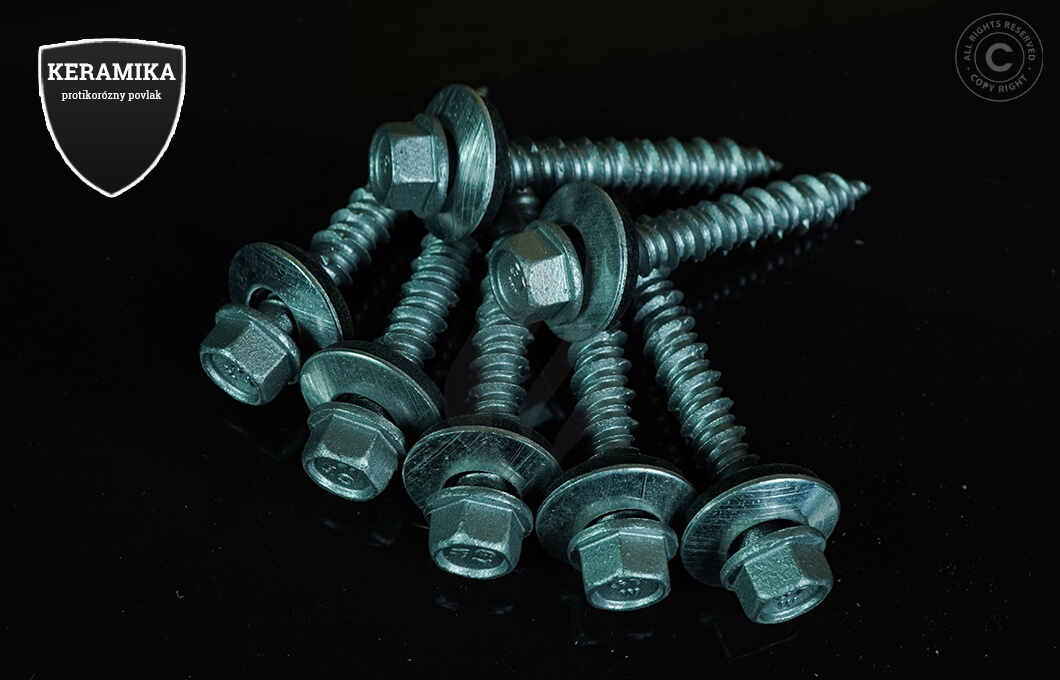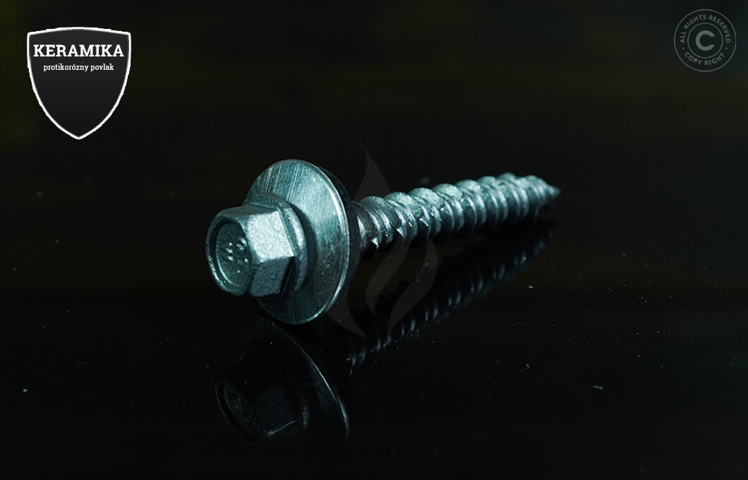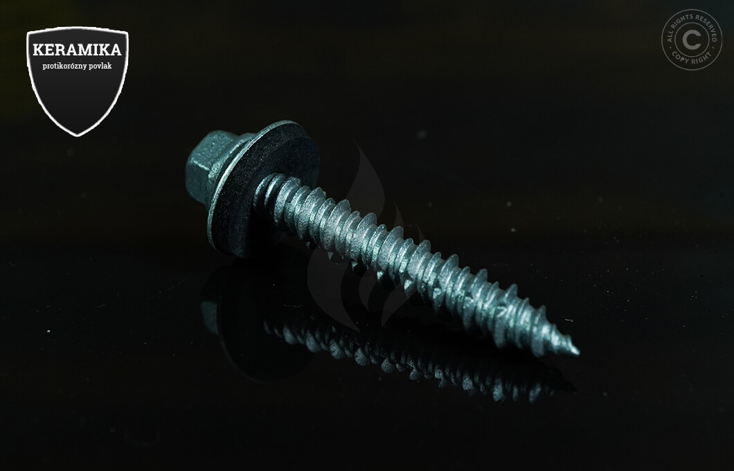 TEX självgängande skruvar är tillverkade av galvaniserat rostfritt stål och har en speciell korrosionsskyddande keramisk behandling. Sexkantigt 8 mm gängat huvud (10,5 mm diameter på hela huvudet). EPDM-brickan är galvaniserad och vulkaniserad i dimensionerna 16 mm (standard).