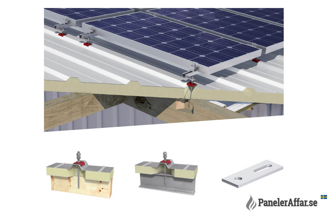 Förankringselement för solpaneler i sandwichpaneler (rostfritt stål)