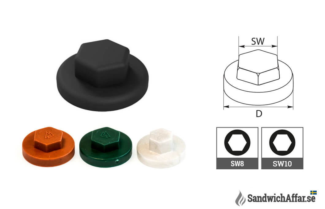 För täckning av skruvhuvuden tillsammans med brickor i olika storlekar. De är tillverkade av polyeten som är motståndskraftig mot väderpåverkan. Du kan välja bland olika färger eller fråga om tillgänglighet av färg.